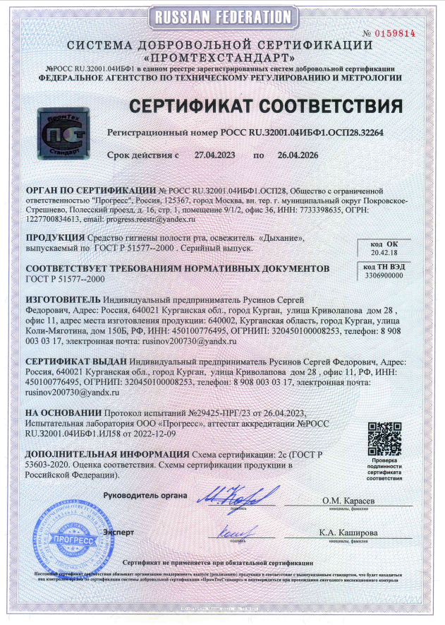 Сертификаты качества